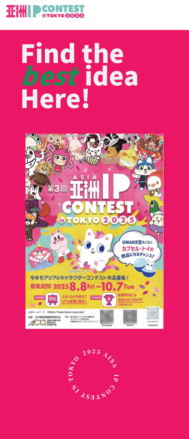 在这里,每位参赛者都有机会在国际化专业评审团与中日市场检验的双重淬炼下,获得从创意雏形到成熟IP的成长机会。当您选择参与其中,不仅是在参加一场比赛,更是在加入一个持续生长的亚洲创意共同体。